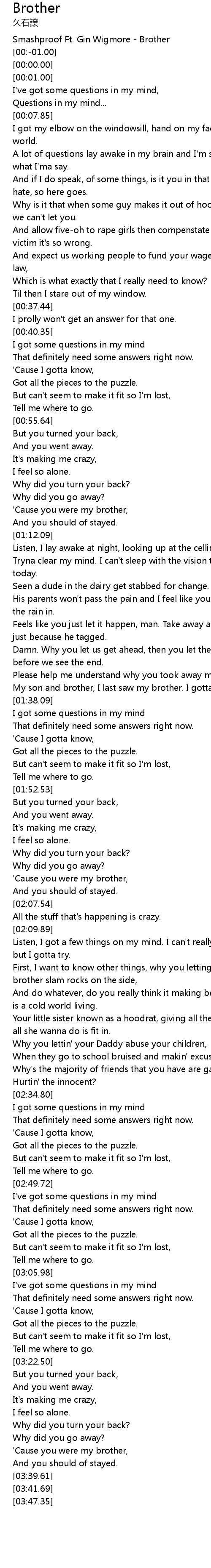 A lot of questions lay awake in my brain and I'm still tryna suss out what I'ma say. |