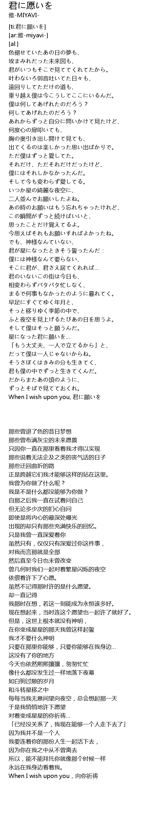 | [04:22.46] | When I wish upon you, 君に願いを |
