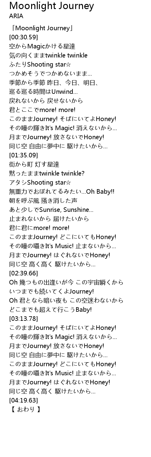 | [01:20.20] | 月までJourney! 放さないでHoney! |