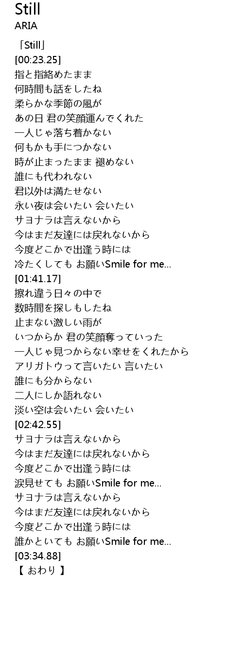 | [00:01.25] | 「Still」 |