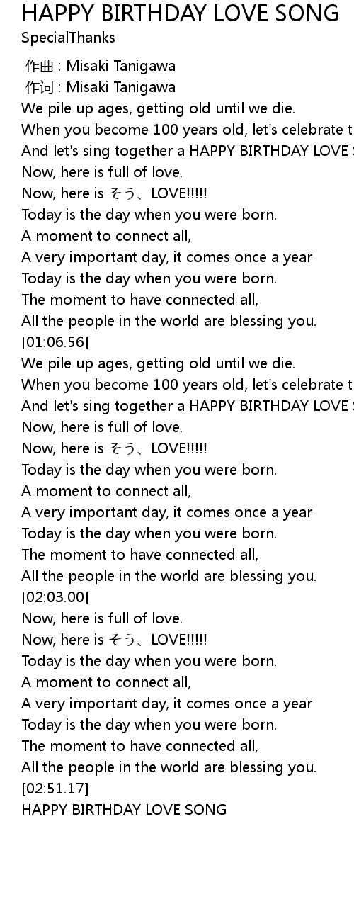 | [03:03.54] | HAPPY BIRTHDAY LOVE SONG |