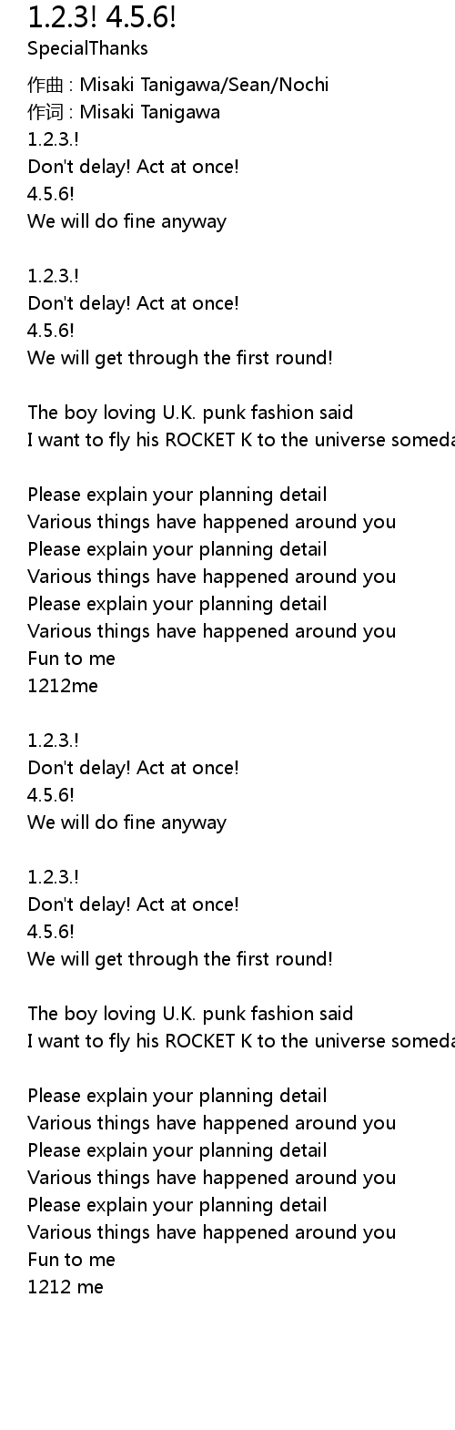 | Song | 1.2.3! 4.5.6! |