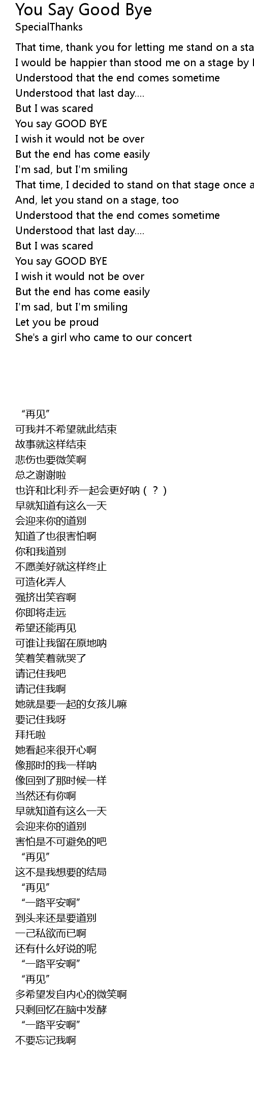 You say GOOD BYE |