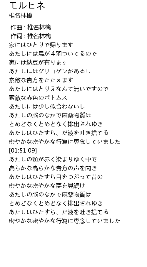 | [00:01.00] | 作词 : 椎名林檎 |