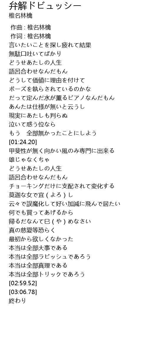 | [00:01.00] | 作词 : 椎名林檎 |