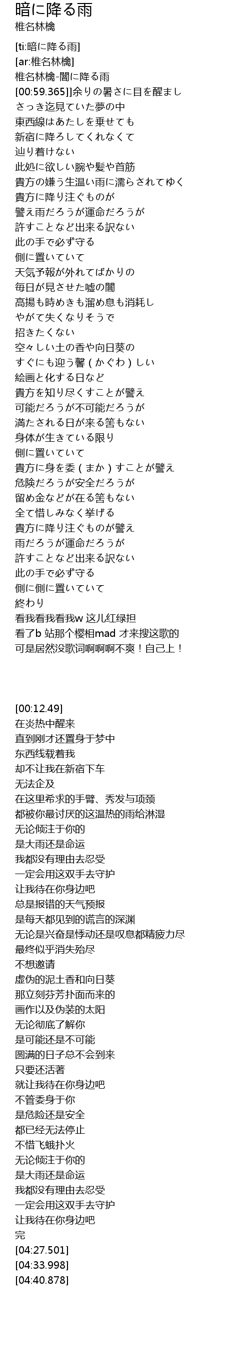 | [ti:暗に降る雨] | |
