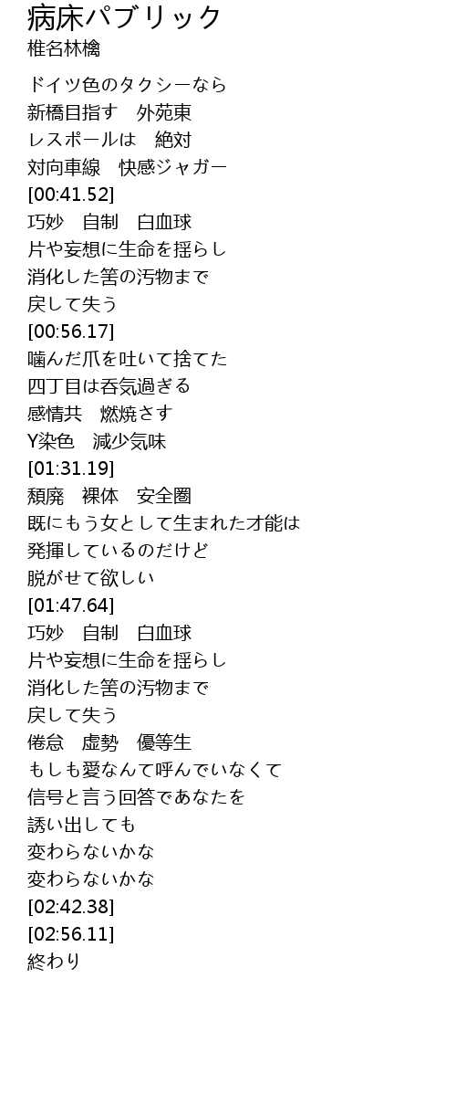 | [01:31.93] | 頽廃 裸体 安全圏 |