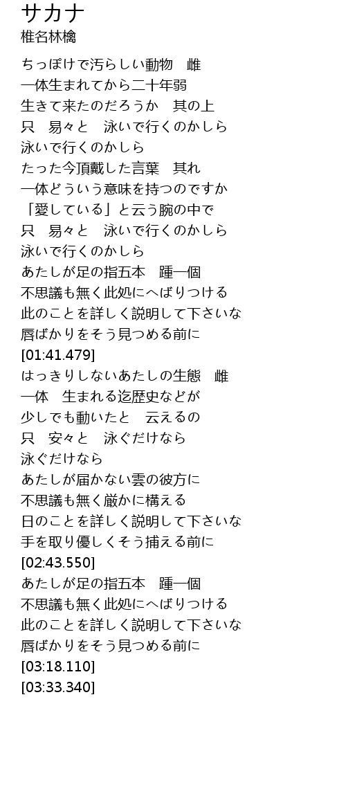 | [00:33.730] | 生きて来たのだろうか 其の上 |