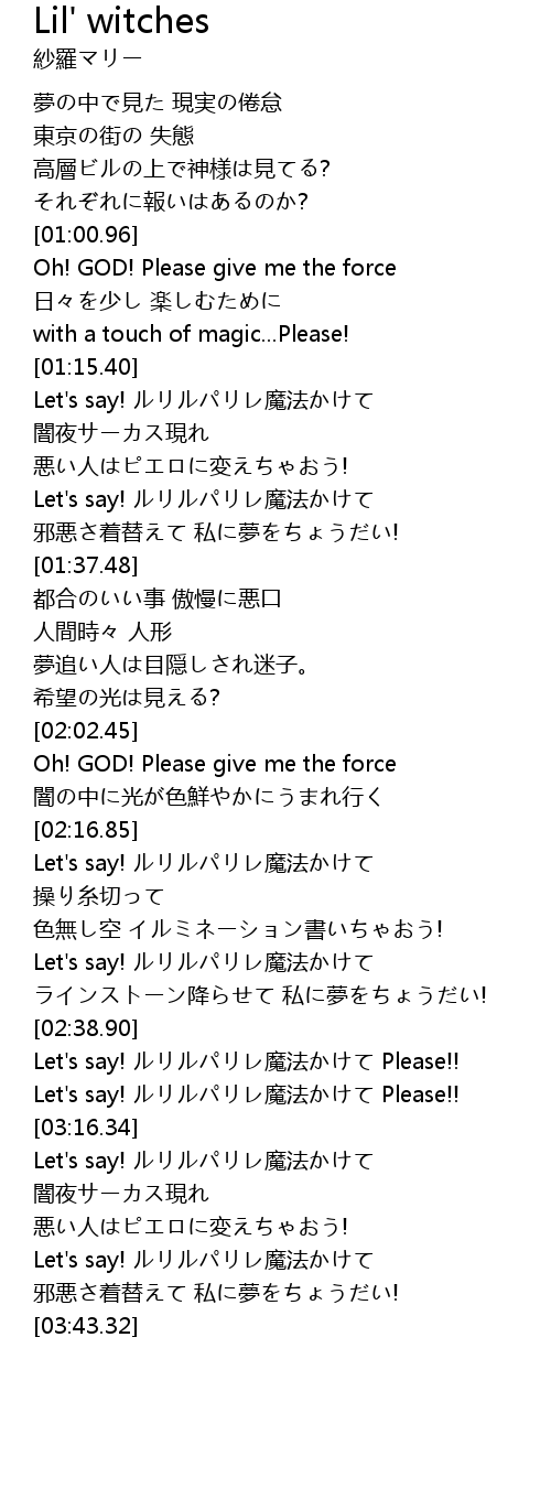 | [03:33.24] | Let's say! ルリルパリレ魔法かけて |