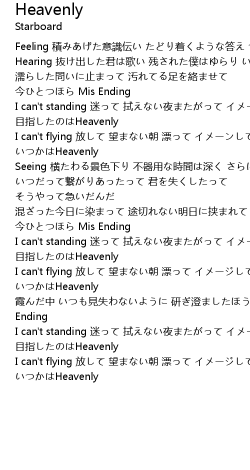 | I can't flying 放して 望まない朝 漂って イメーンして いつかはHeavenly | |