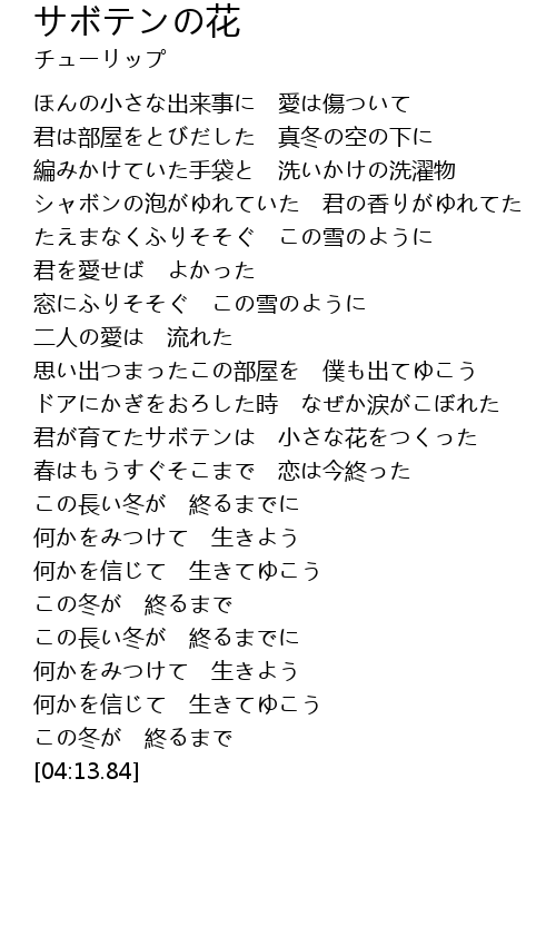 | [02:41.11] | 君が育てたサボテンは 小さな花をつくった |