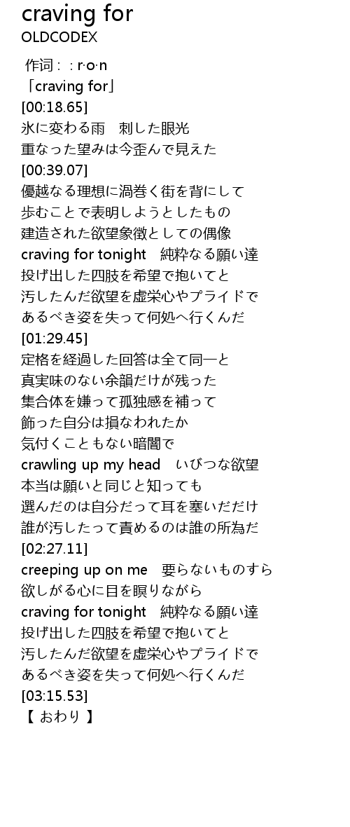 | [00:01.65] | 「craving for」 |