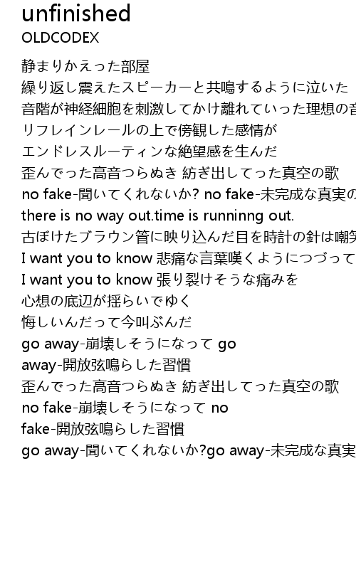 | [03:06.490] | no fake-崩壊しそうになって no fake-開放弦鳴らした習慣 |