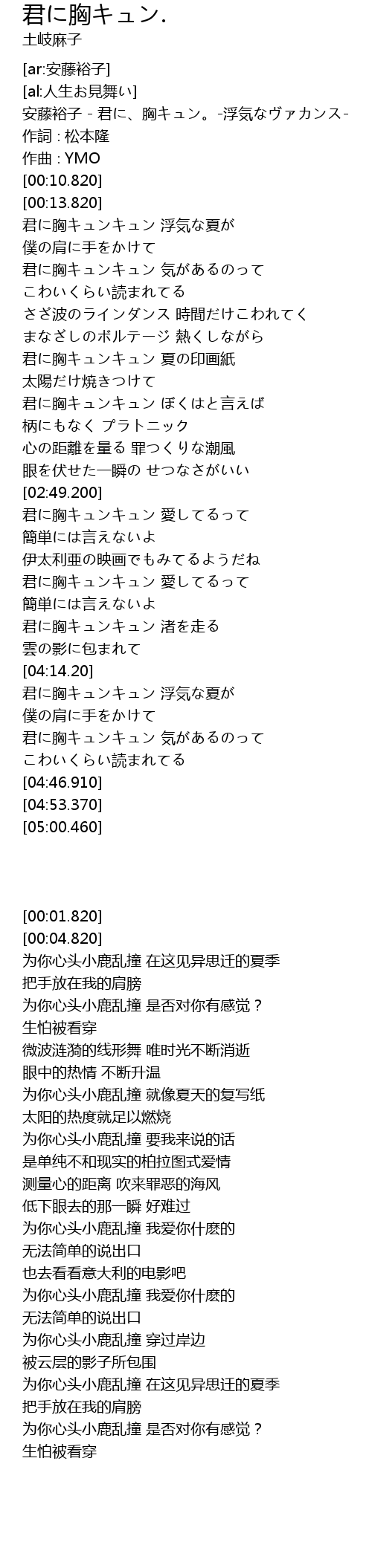 | [04:19.390] | 君に胸キュンキュン 浮気な夏が |