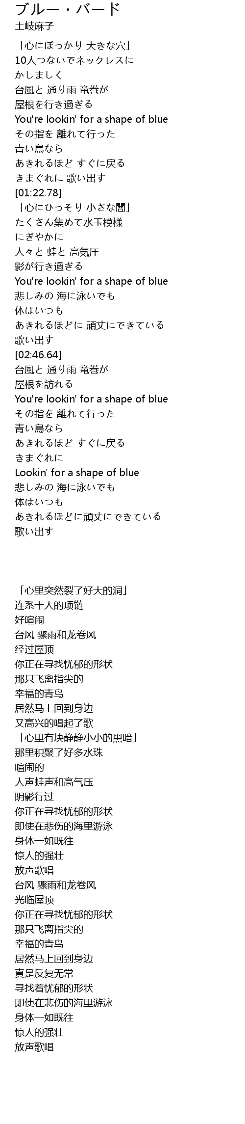 | [02:09.55] | You' re lookin' for a shape of blue |