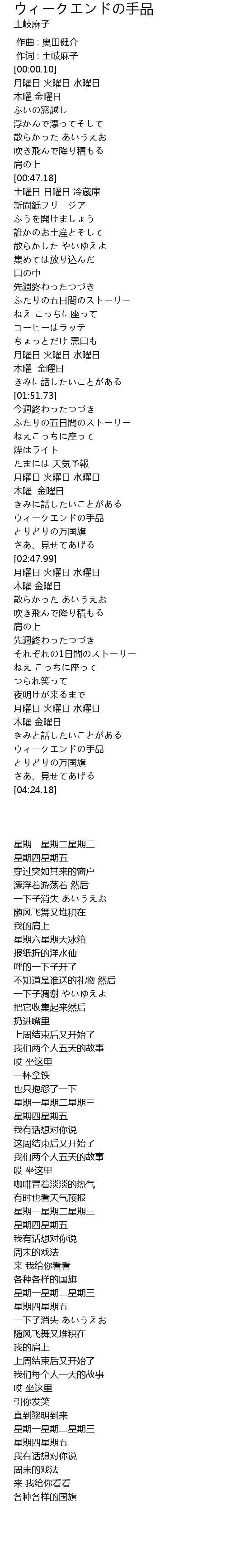 | [04:00.07] | 月曜日 火曜日 水曜日 |