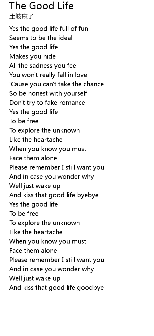 Yes the good life |