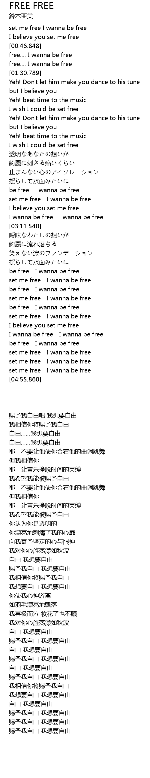 | [01:45.729] | Yeh! Don't let him make you dance to his tune |