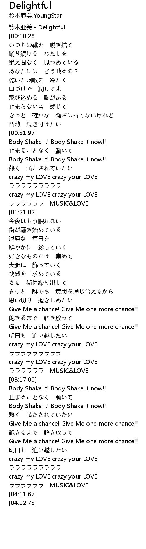 | [00:59.95] | Body Shake it! Body Shake it now!! |