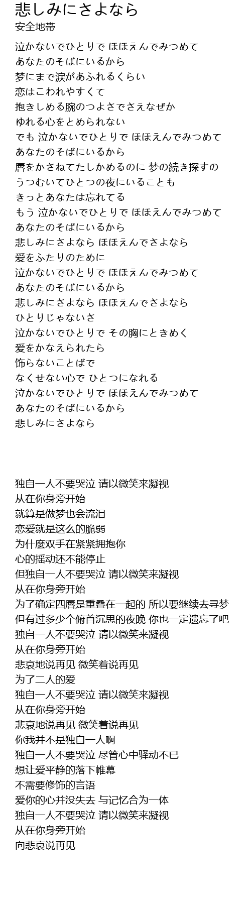 | [02:54.190] | 悲しみにさよなら ほほえんでさよなら |