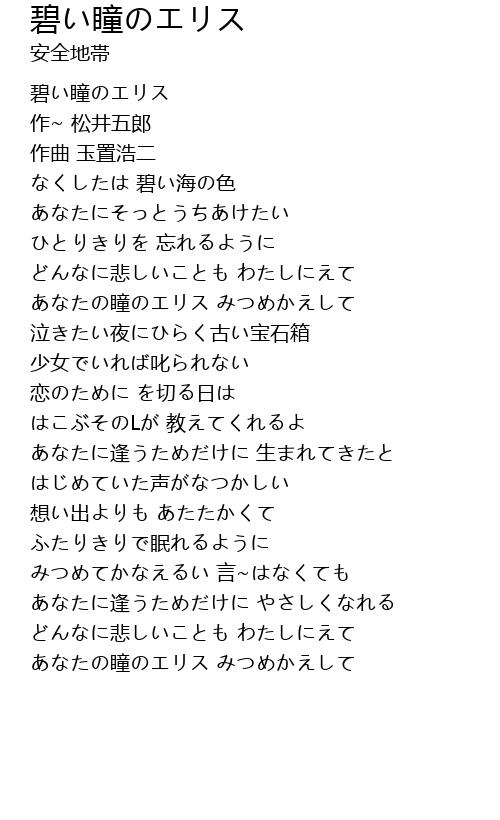 | [04:06.02] | あなたの瞳のエリス みつめかえして |