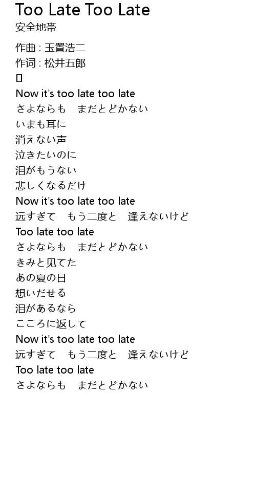 | Now it' s too late too late | |