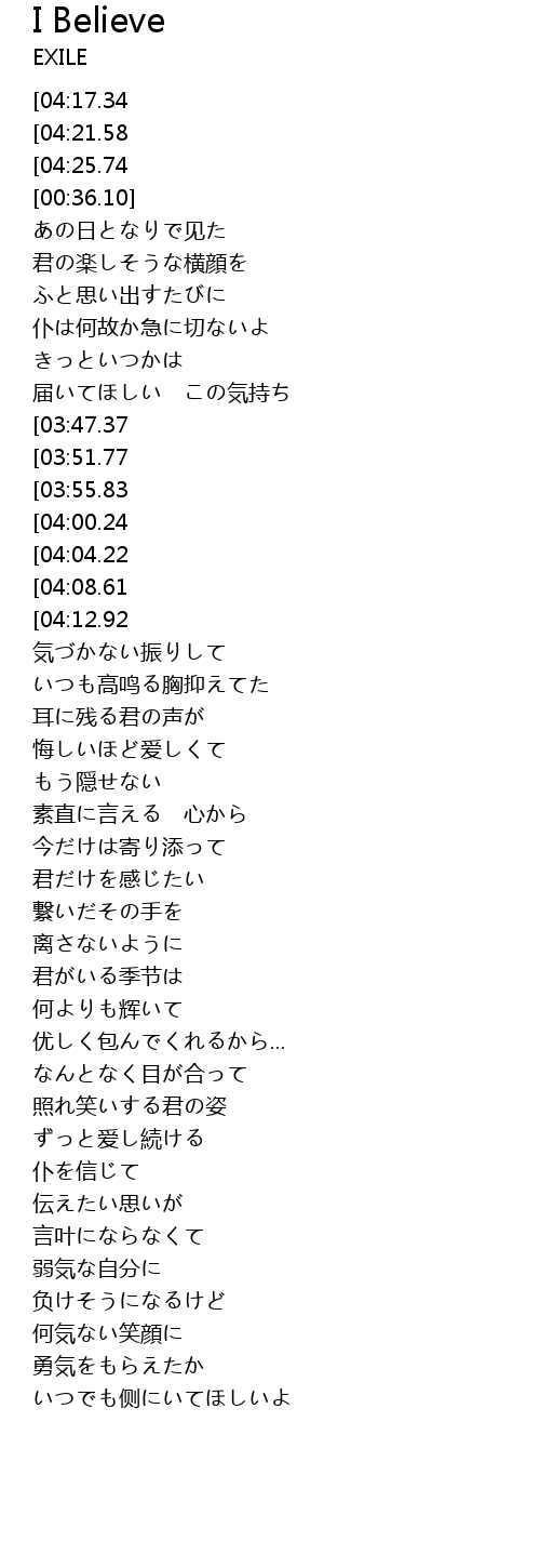 | [01:20.30][03:51.77] | 君だけを见ていたい |