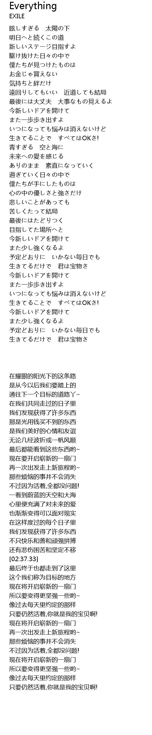 | [03:38.68] | 生きてることで すべてはOKさ! |