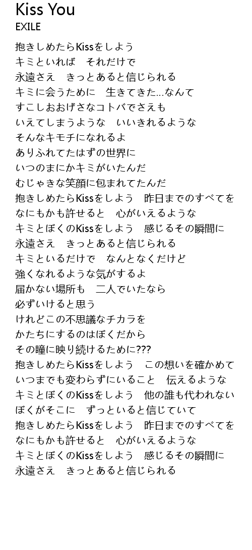抱きしめたらKissをしよう この想いを確かめて |