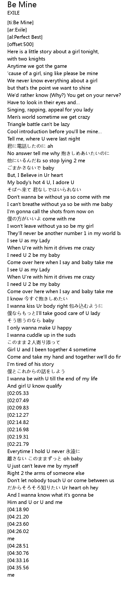 | [00:07.02] | ' cause of a girl, sing like please be mine |
