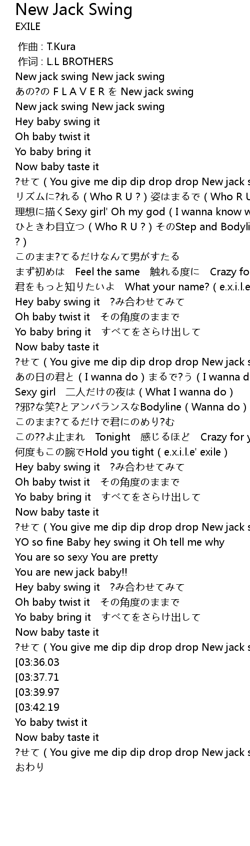 | [03:44.60][03:36.03] | New jack swing New jack swing |