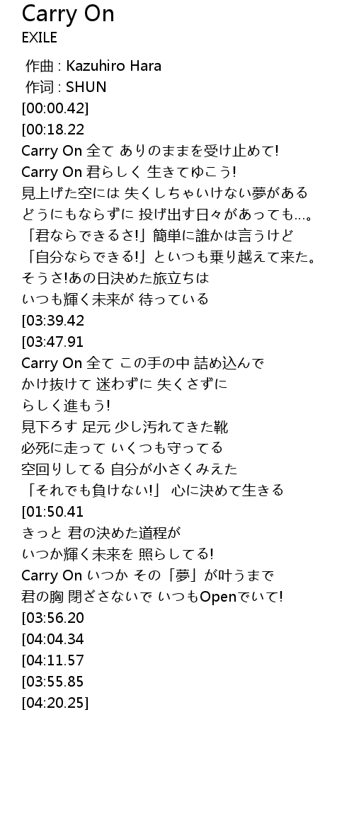 | [02:45.67] | Carry On いつか その「夢」が叶うまで |