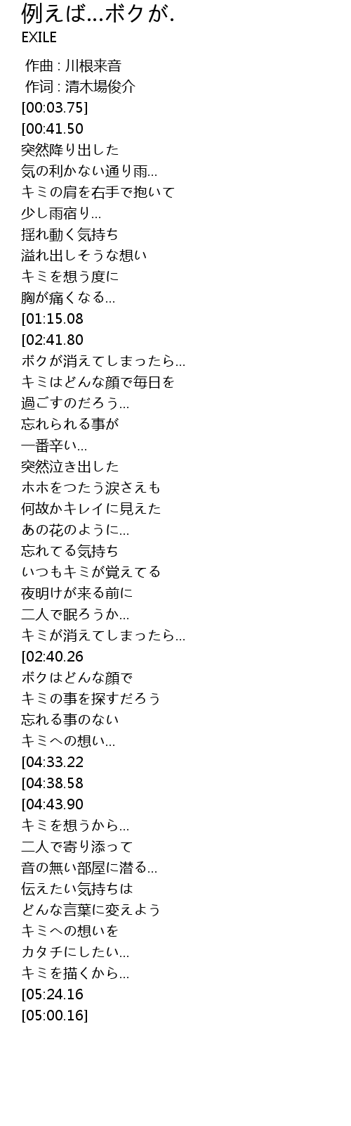 | [03:30.25] | キミを想うから... |