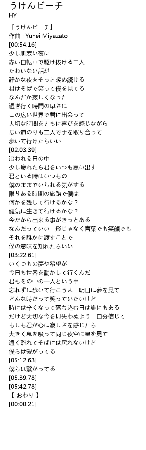 | [00:14.16] | 「うけんビーチ」 |