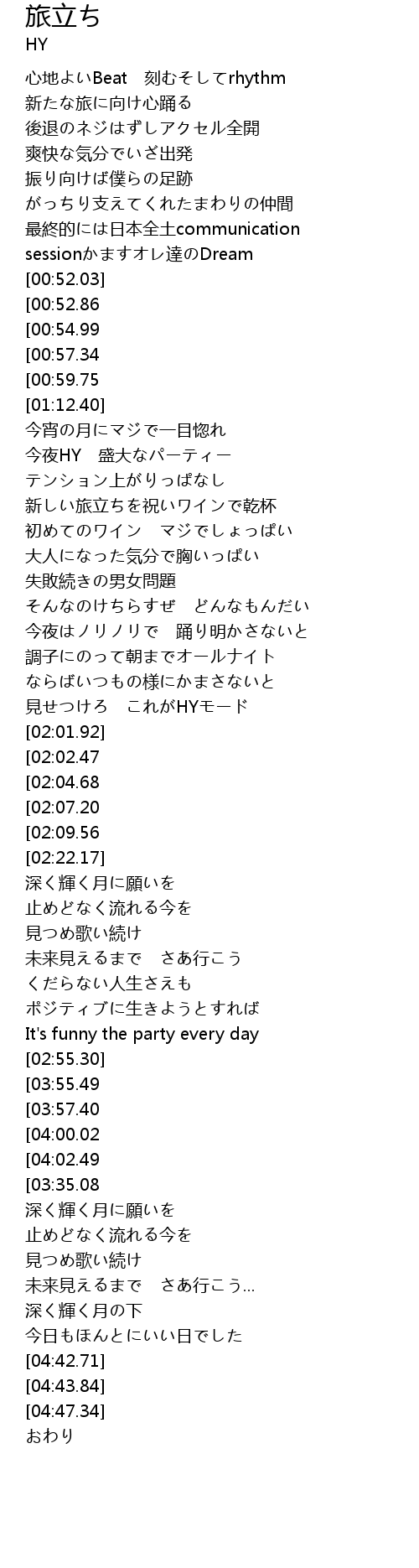 | [01:34.73] | 今夜HY 盛大なパーティー |