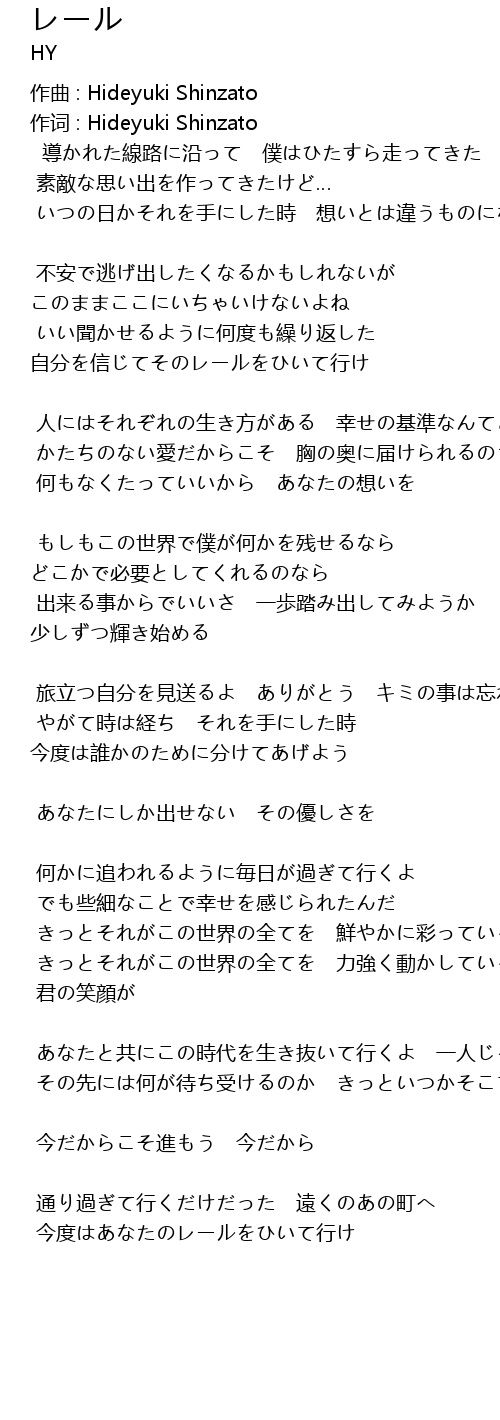 | いい聞かせるように何度も繰り返した 自分を信じてそのレールをひいて行け | |