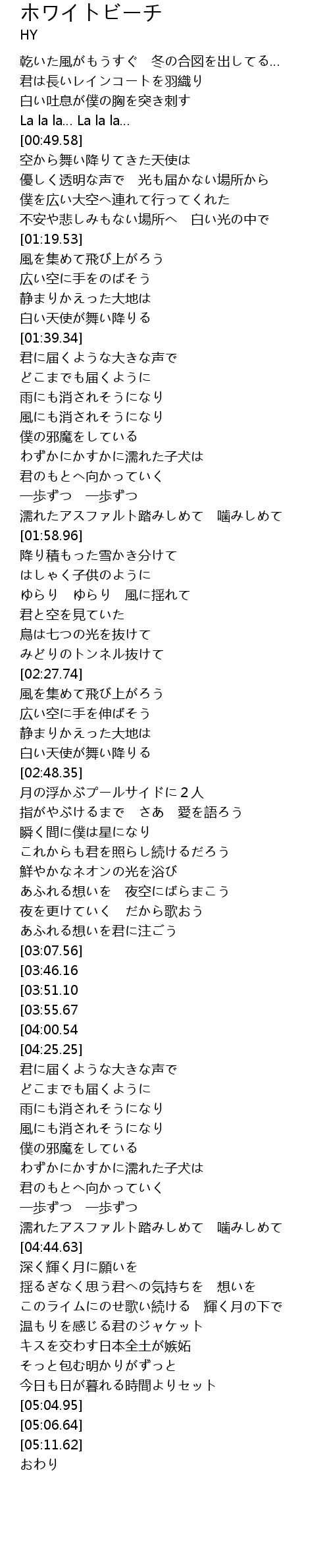 | [04:20.07][04:00.54][03:40.92] | 白い天使が舞い降りる |