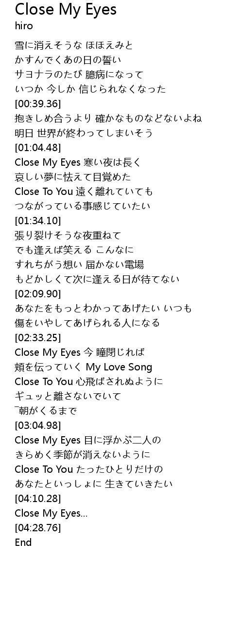 | [03:38.87] | Close My Eyes 目に浮かぶ二人の |