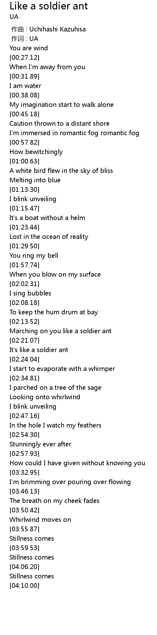 | [04:03.53] | Stillness comes |