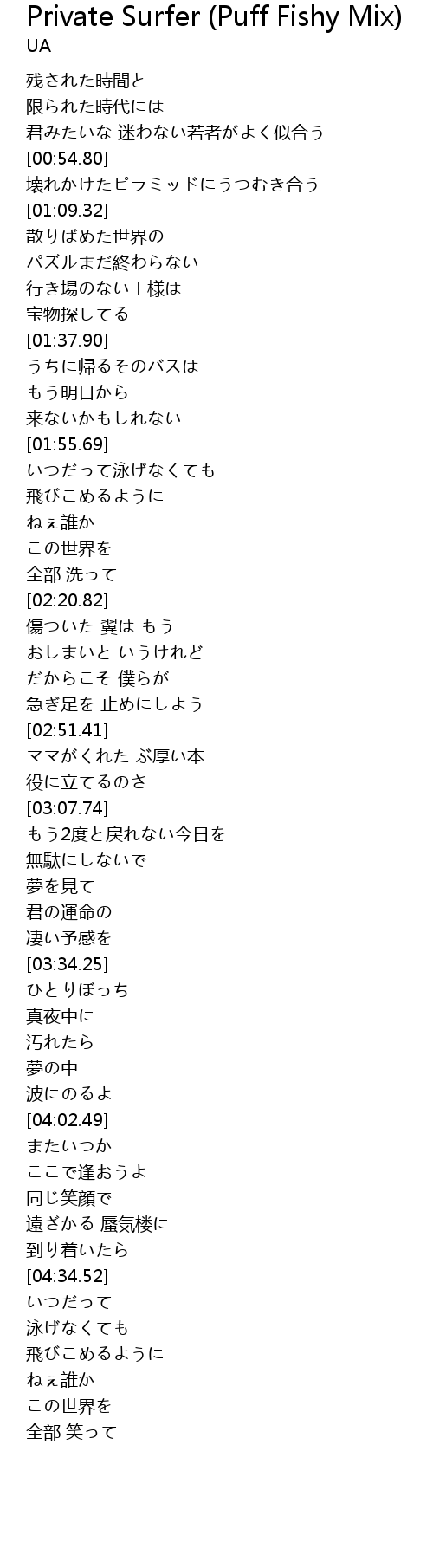 | [00:55.74] | 壊れかけたピラミッドにうつむき合う |
