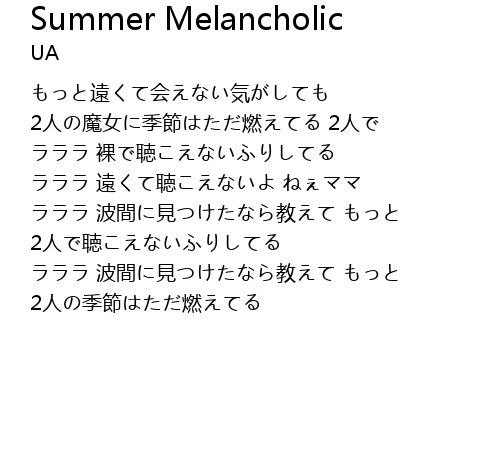 | [02:06.500] | 2人の魔女に季節はただ燃えてる 2人で |