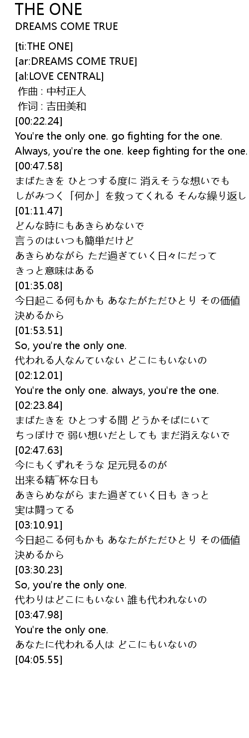 | [02:12.50] | You're the only one. always, you're the one. |
