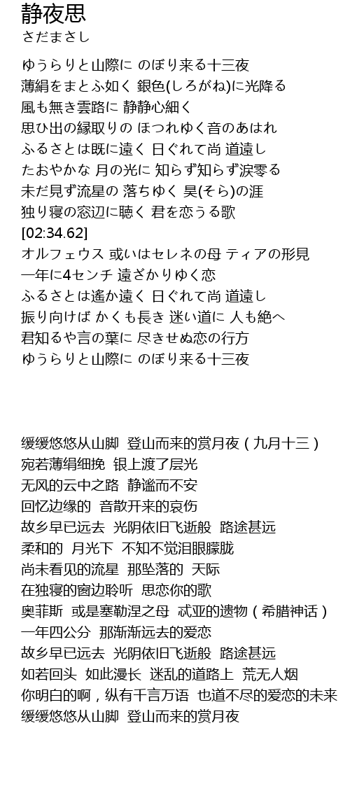 | [02:20.54] | 独り寝の窓辺に聴く 君を恋うる歌 |