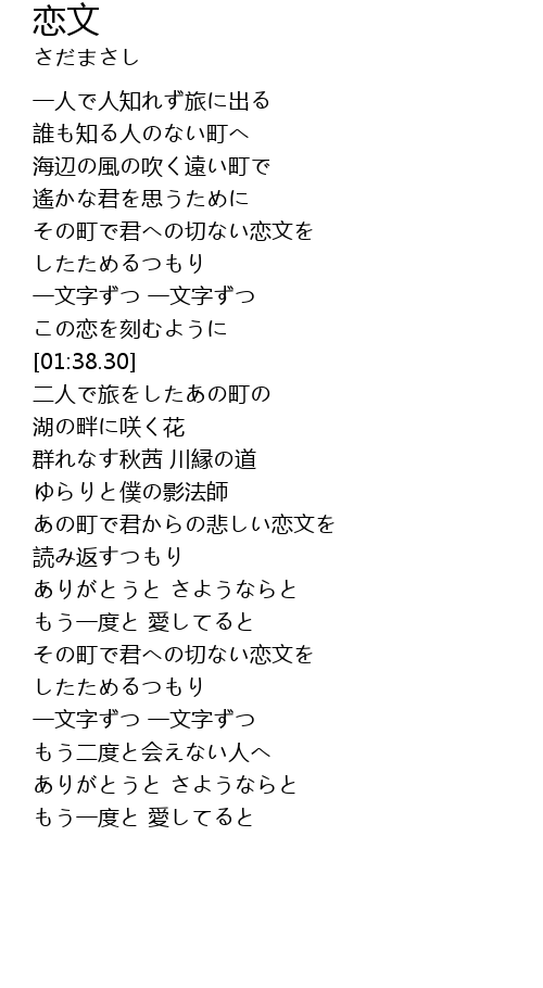 | [02:38.35] | あの町で君からの悲しい恋文を |