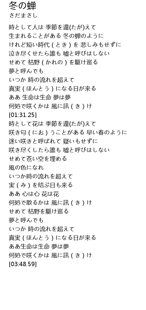 | [00:24.60] | 生まれることがある 冬の蝉のように |