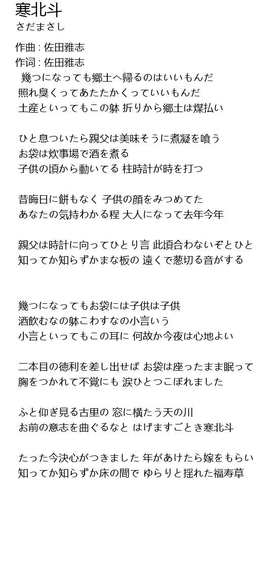 | 二本目の徳利を差し出せば お袋は座ったまま眠ってる | |