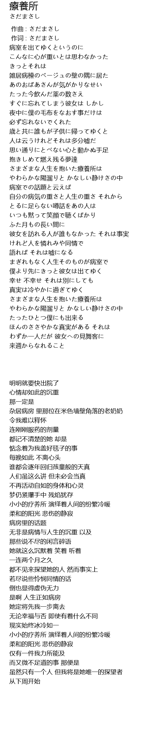 | [03:33.33] | まぎれもなく人生そのものが病室で |