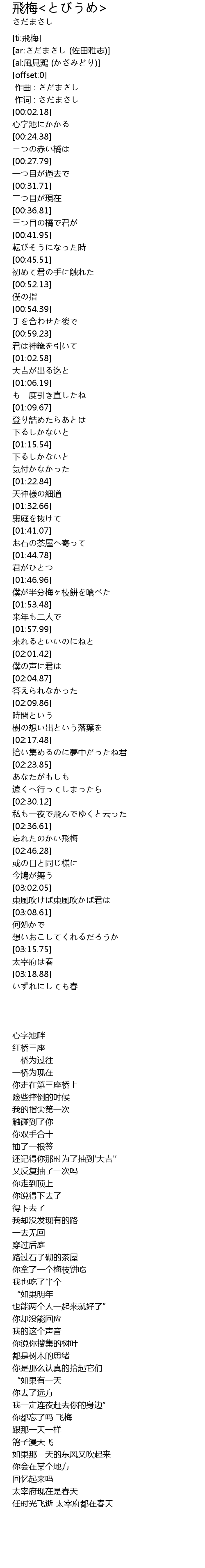 | [03:04.43] | 東風吹けば東風吹かば君は |