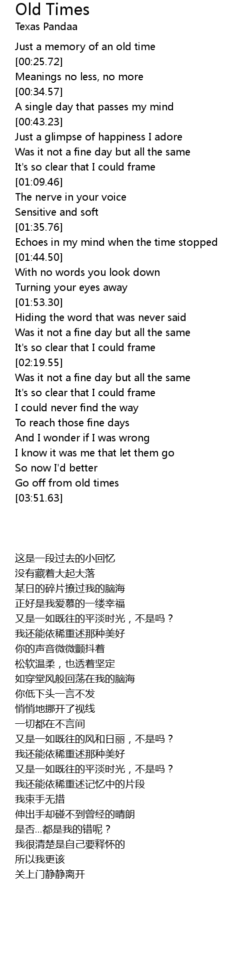 Old Times Lyrics