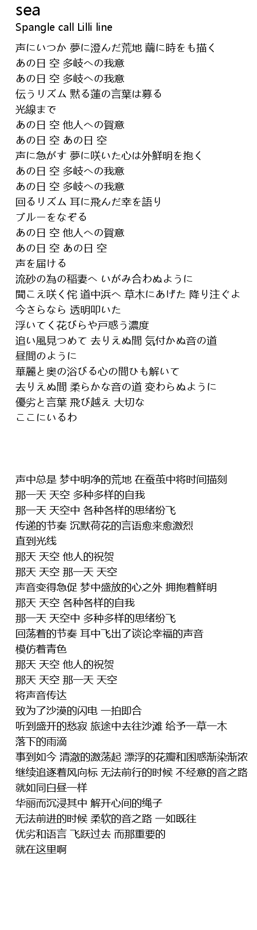 | [03:25.99] | 聞こえ咲く侘 道中浜へ 草木にあげた 降り注ぐよ |